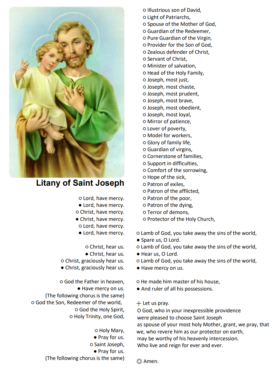 Daily Litany of St. Joseph Prayer 🔹 Daily Meditation🔹 Daily Reading of the New Testament 🔹 Attend Sunday Mass & all Solemnity Masses 🔹 Attend Eucharistic Adoration (at least 1 per month) 🔹 Go to Confession (at least 1 per month)